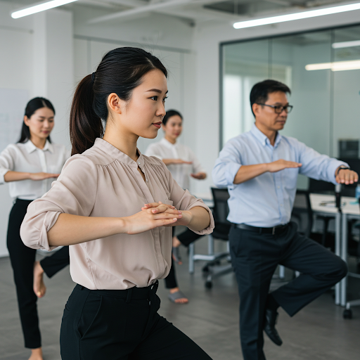 Ejercicios Basados en el Chikung: Estos ejercicios están diseñados para mejorar la energía vital, fortalecer el cuerpo y calmar la mente. Son ideales para reducir el estrés, mejorar la postura y aumentar la flexibilidad, se pueden realizar en espacios reducidos, lo que las hace perfectas para entornos de oficina.
